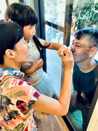 爸爸們帶著孩子走秀時,從慢慢害羞地走,到某位爸爸決定把孩子舉到肩膀,到下一個爸爸甚至直接花式旋轉~大家彼此暗自較勁的模樣,瞬間引起台下媽媽們歡堂笑聲(所以應該是爸爸們為了娛樂媽媽們?)不論是孩子賣力舞動、投入繪本演戲,將故事生動地呈現;或是小手在玻璃上描繪父親們的臉,教室裡每個角落都充滿了大人和孩子的笑聲!